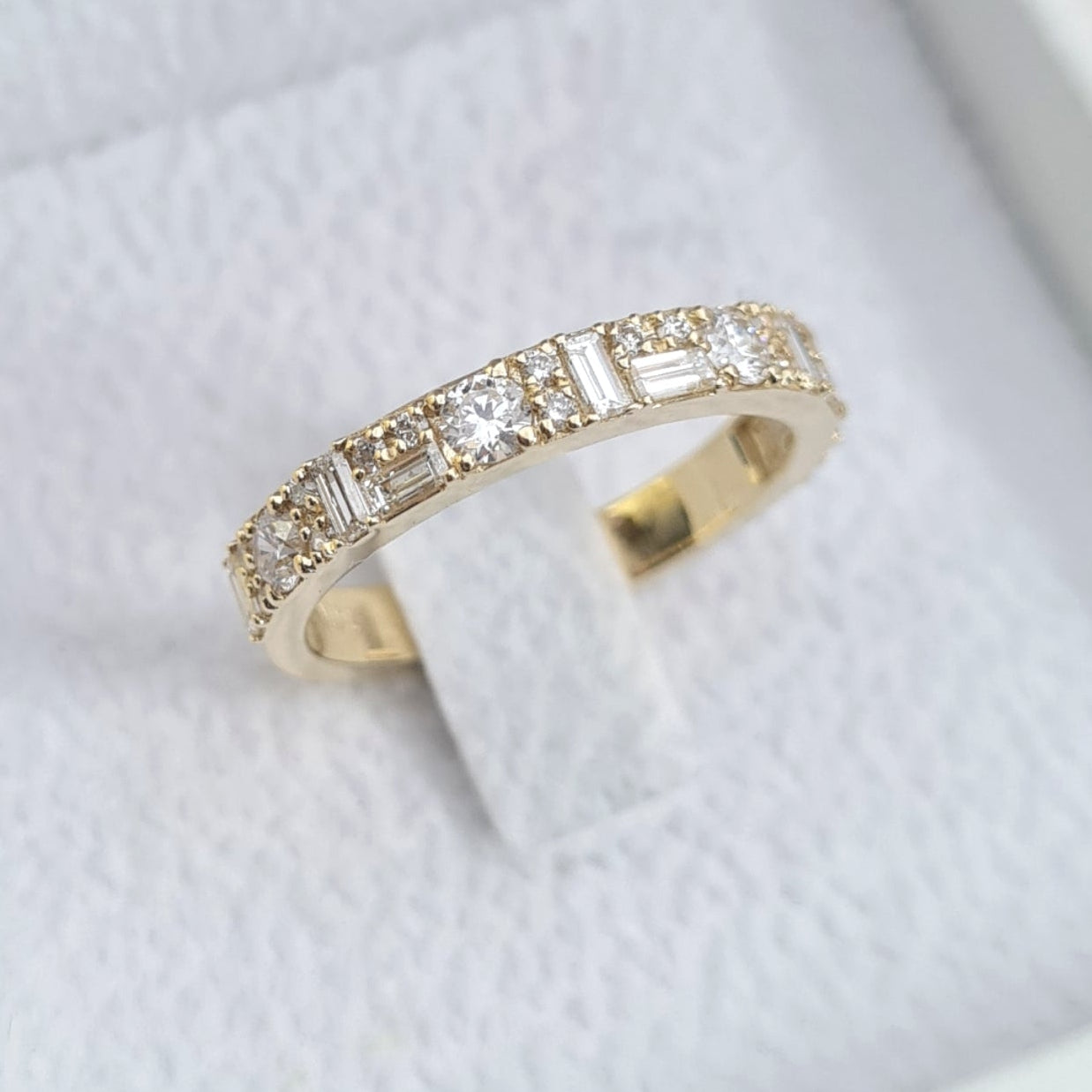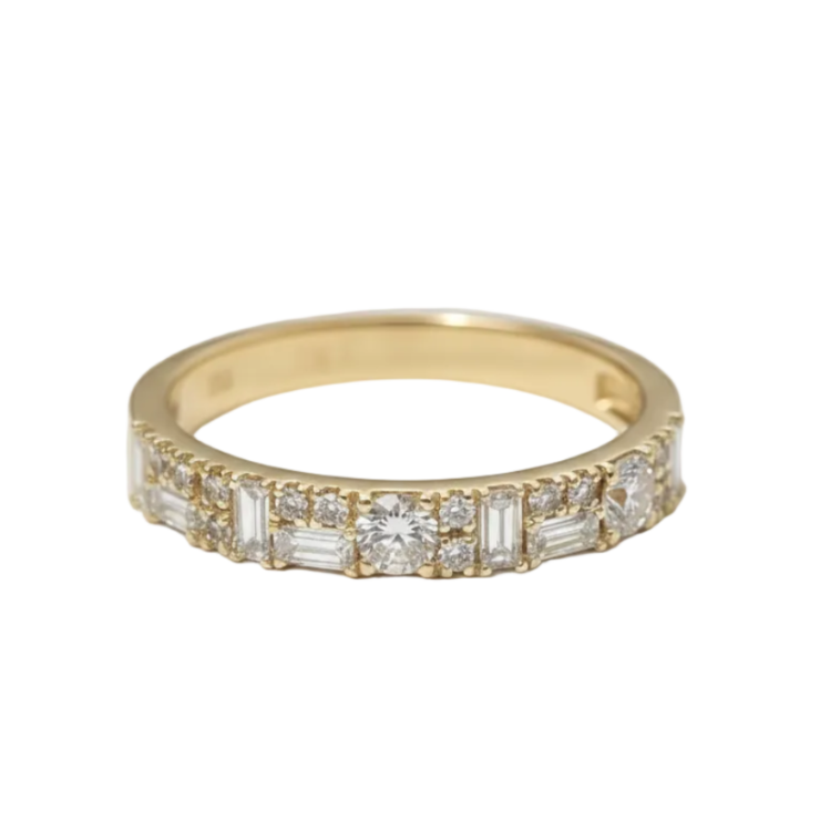 קומפוזיציה מרהיבה של יהלומים בגט ויהלומים עגולים,